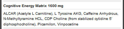 Afterburn Fuel is separated into 2 different proprietary blends: the “Get Jacked Matrix” (no, I’m not kidding; they really thought that was a good name) and the “Cognitive Energy Matrix”.